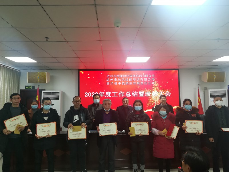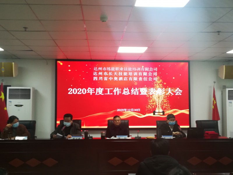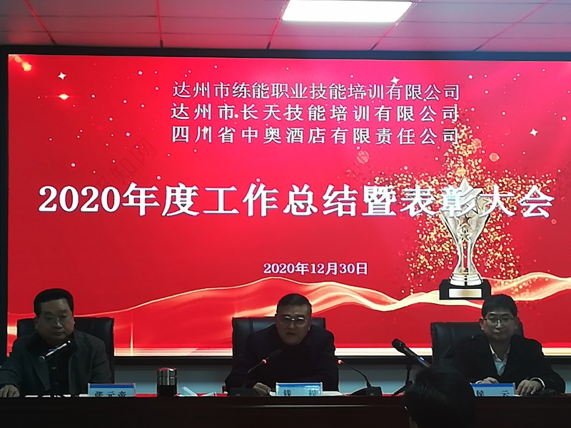 达州市练能职业技能培训有限公司、达州市长天技能培训有限公司、四川省中奥酒店有限责任公司于2020年12月30日下午16时联合召开了2020年度工作总结暨表彰大会。三公司全体员工参加了大会。
