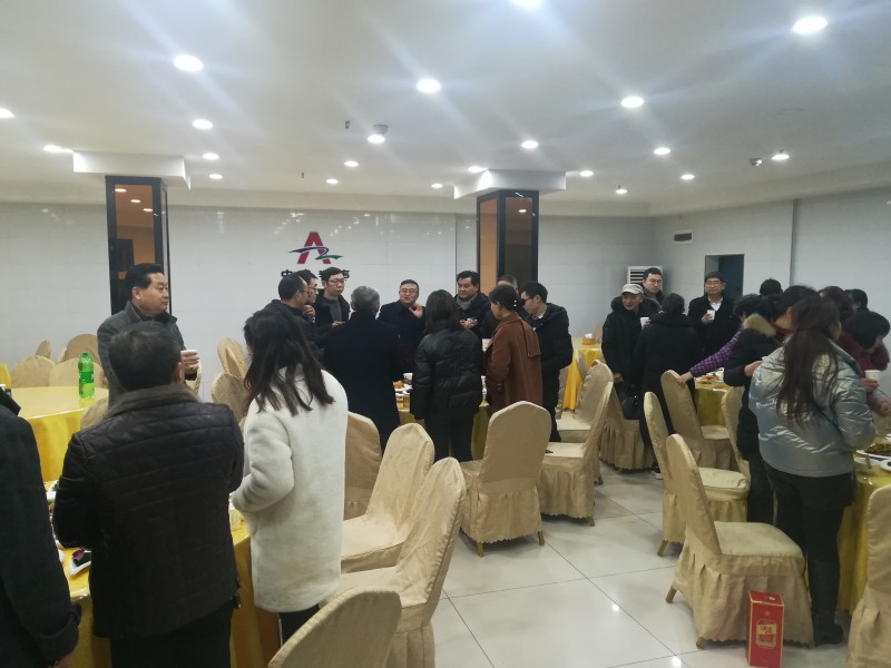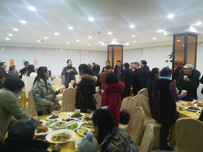 晚上18时,全体员工在中奥酒店参加了新年聚餐。钱总、温总、张总、侯总、聂总及各部门负责人向公司全体员工敬酒并致新年祝福!