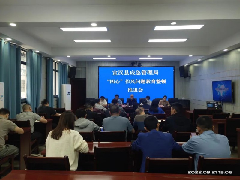 9月21日,宣汉县应急管理局召开全局“四心”作风问题教育整顿工作推进会,机关党委书记王兴主持会议,全局领导干部职工参会,并邀请派驻纪检组出席会议。